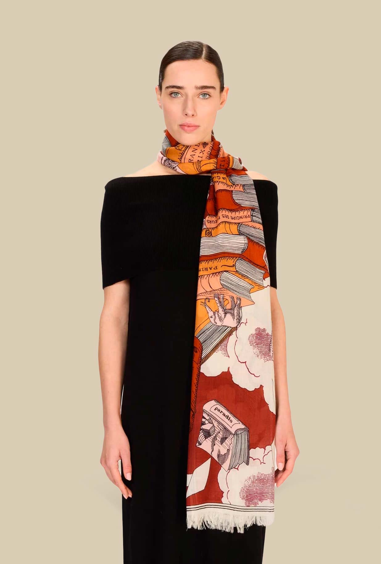 La nuova sciarpa Editions, firmata Inoui Editions, onora l’universo dei libri antichi, sospesi tra pagine e nuvole, e invita a immergersi in un universo di sogni senza tempo. Realizzata nel formato 70x190cm in un leggerissimo Twill di Pura Lana, questa sciarpa avvolge con leggerezza, aggiungendo un tocco sognante eraffinato ad ogni look.