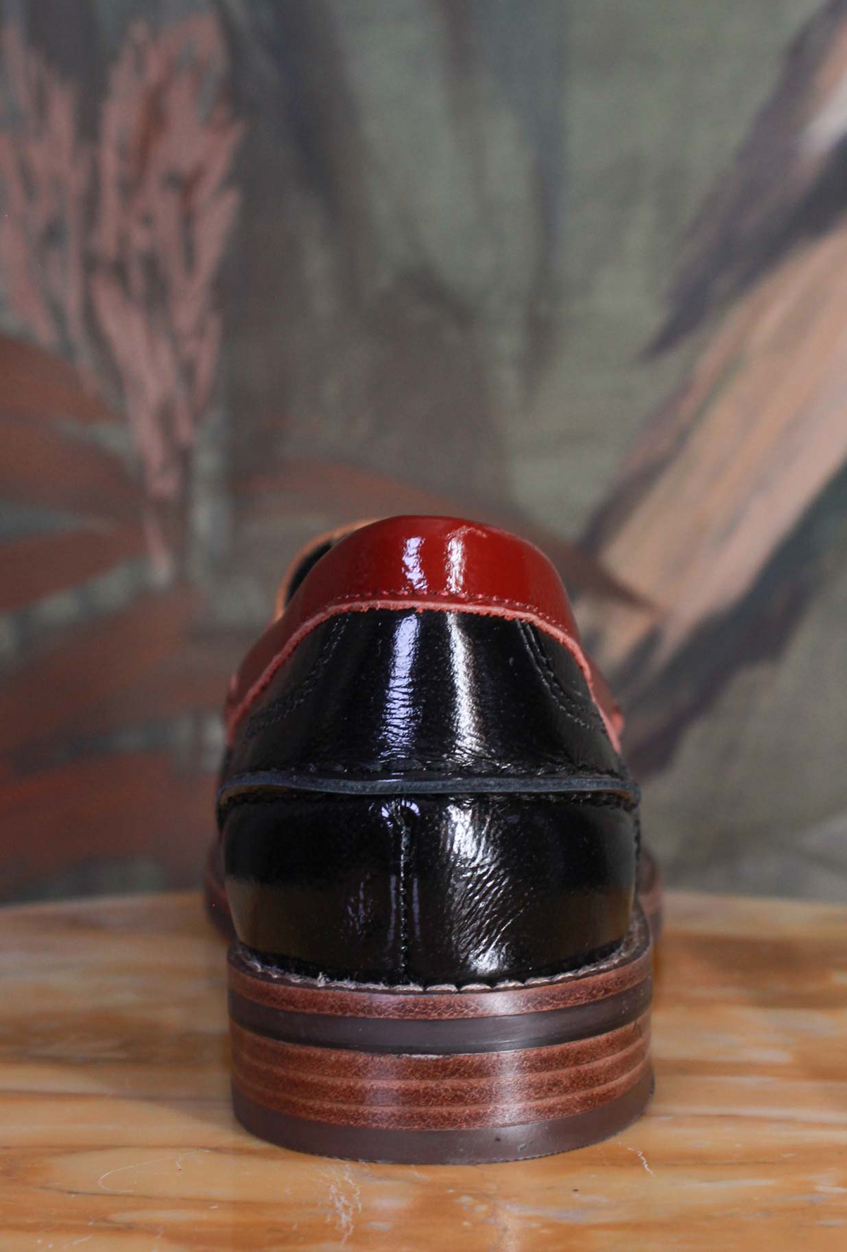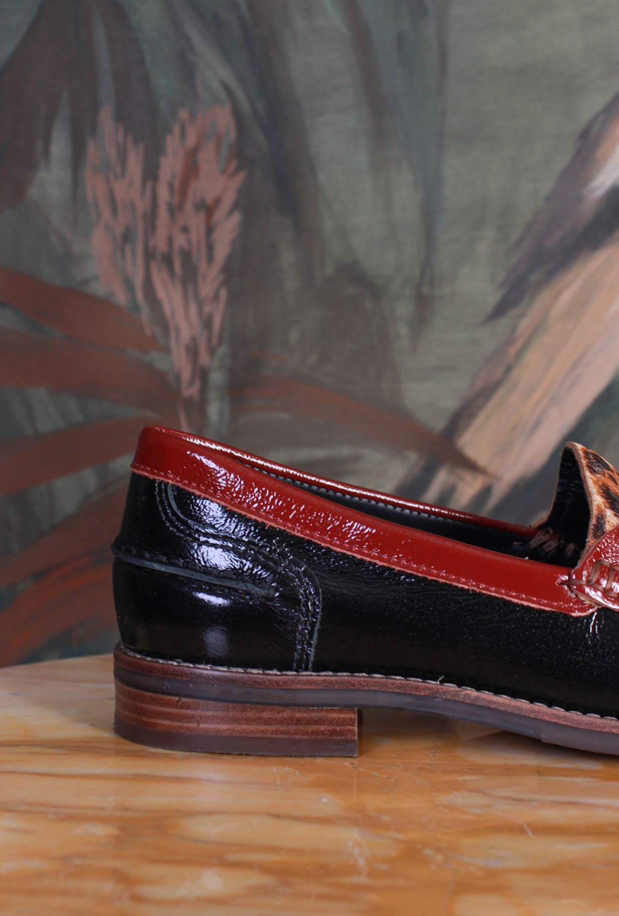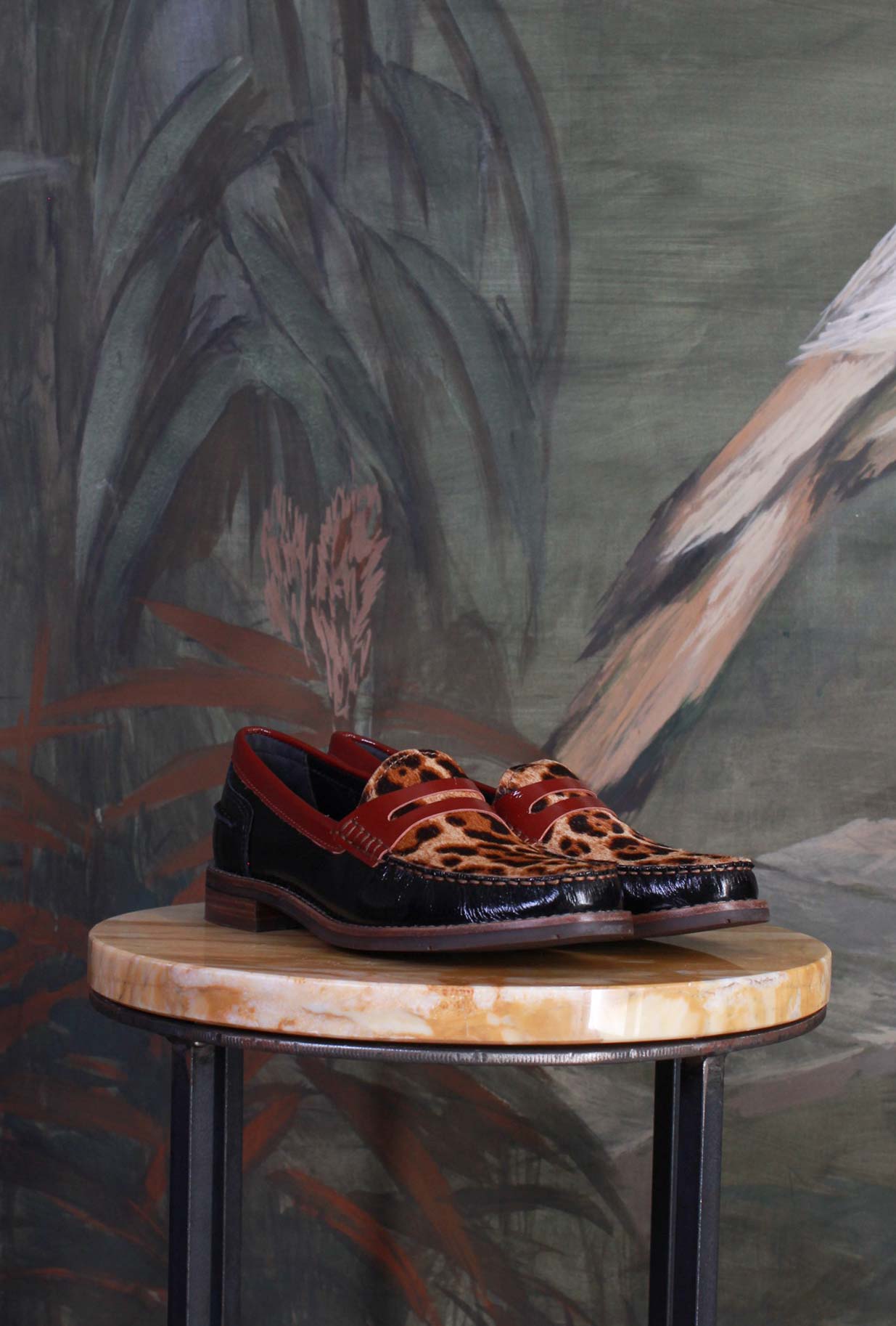 Reinterpretazione Playful-Chic dell'iconico Mocassino Bristol College di Greige. La maison rivisita i canoni urbani con un approccio audace e raffinato al tempo stesso. La leggera suola carrarmato gioca con una tomaia stile college che incrocia pellami pregiati come il Pony Leo e la vernice Burgundy aggiungendo un tocco deciso ad ogni outfit