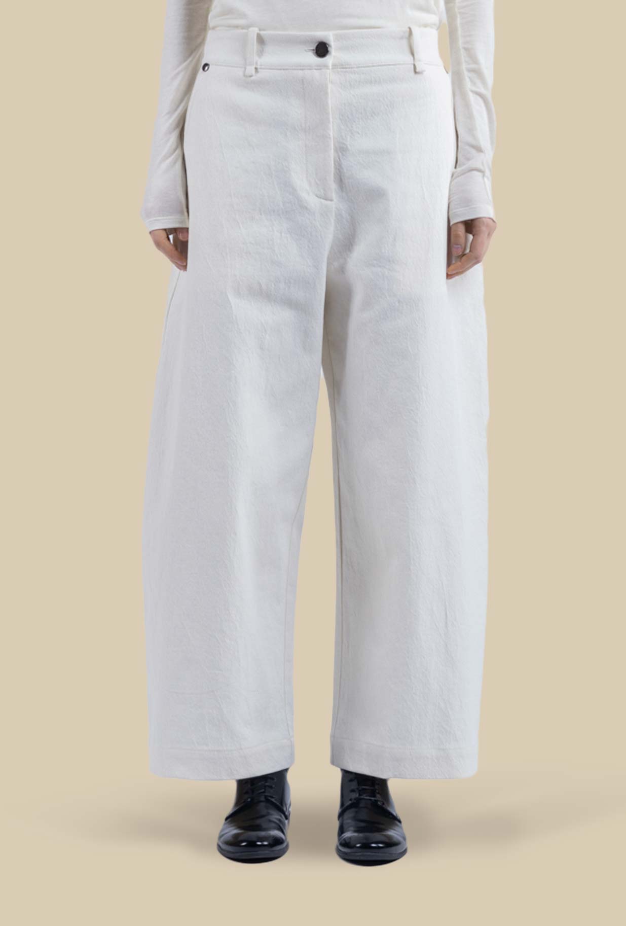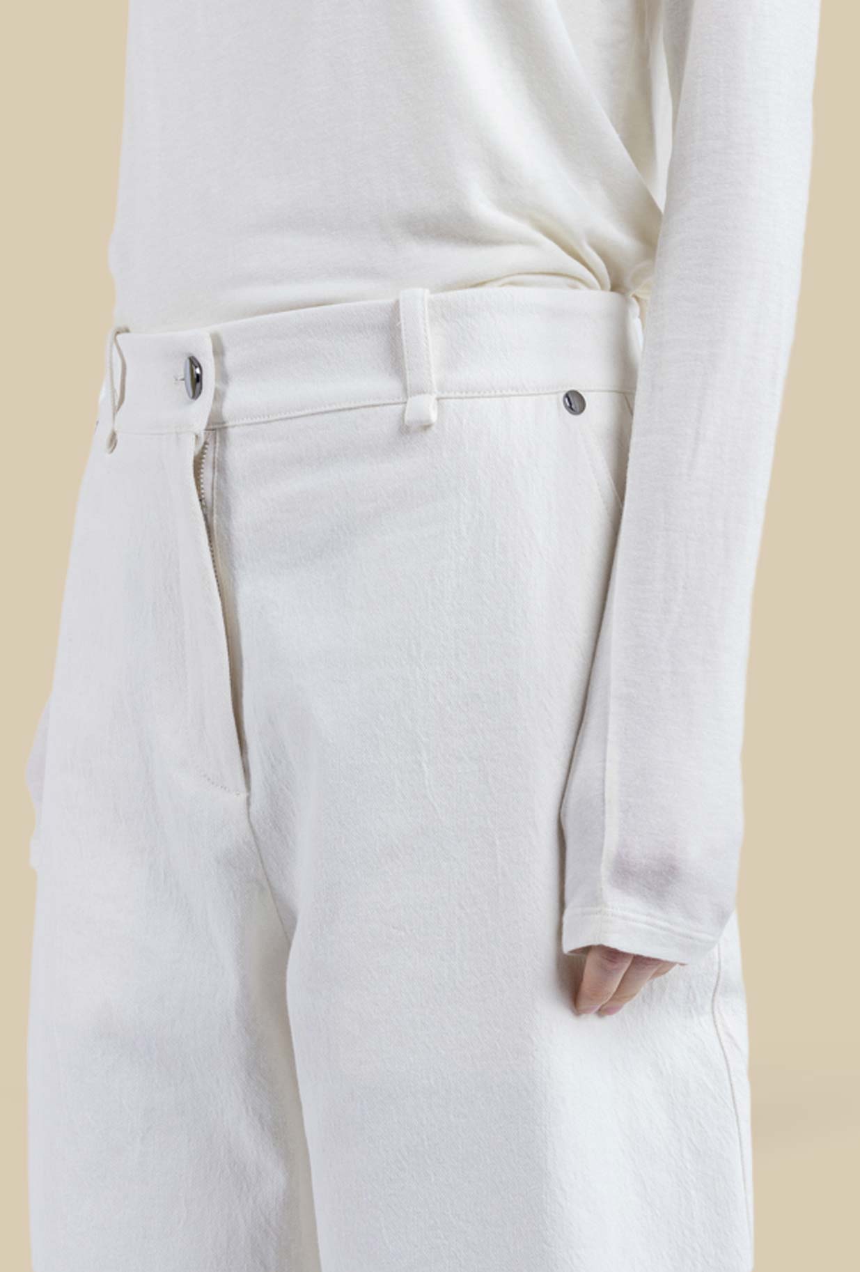 Il nuovo Pantalone Japan Burro di Phisique du Role ti regalerà tutta l’eleganza di una donna moderna. La silhouette è segnato al punto vito dalla cintura alta, la costruzione sartoriale svela ampi volumi a ruota su una lunghezza cropped che slanciano la silhouette, donando fascino ed allure retrò chic. Due comode tasche laterali completano l’outfit. Un pantalone dall’eleganza timeless, per una femminilità disinvolta e contemporanea.