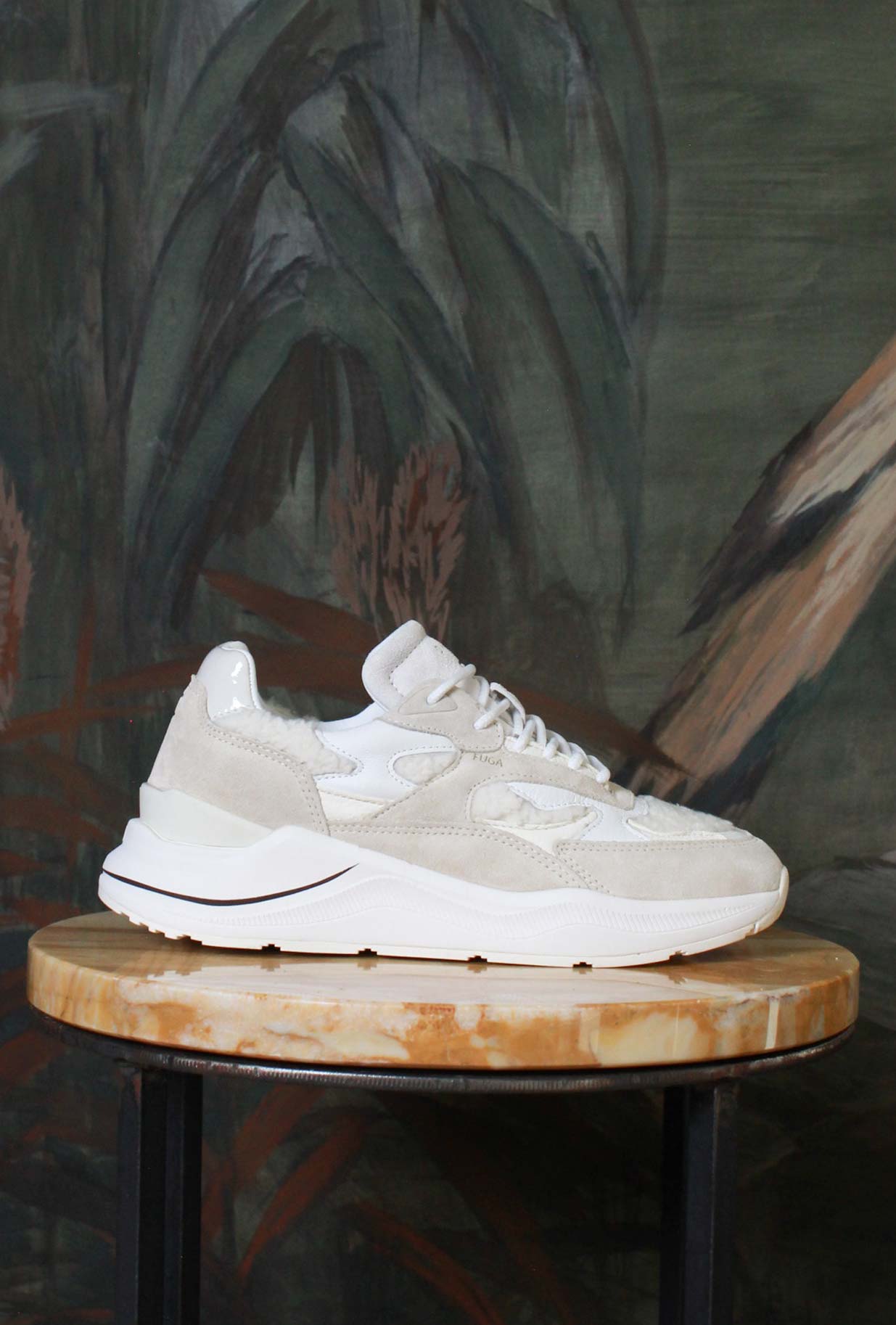 Design audace e personalizzato per l’iconica Sneakers Fuga della Maison D.A.T.E. Il suo design Chunky è caratterizzato da linee compatte d’ispirazione 70’s e dettagli ben definiti che la rendono immediatamente riconoscibile. La nuova variante Natural è resa speciale dall’inedito teddy, un materiale morbido e caldo che aggiunge un twist originale ed esclusivo alla sneaker. La FUGA non è solo una scarpa running, ma un vero e proprio accessorio di moda da sfoggiare in ogni occasione per aggiungere un tocco sporty-chic ai tuoi look Fall-Winter.